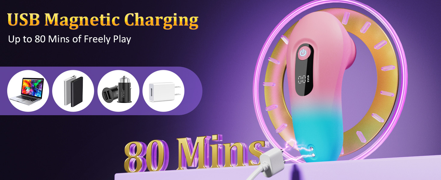 đ Magnetic Fast Charging, 80-Minute Battery Life: Magnetic USB fast charging fully charges in just 90 minutes, with up to 80 minutes of battery life for uninterrupted pleasure. High-quality, skin-friendly silicone material is smooth, flexible, safe, and easy to clean.