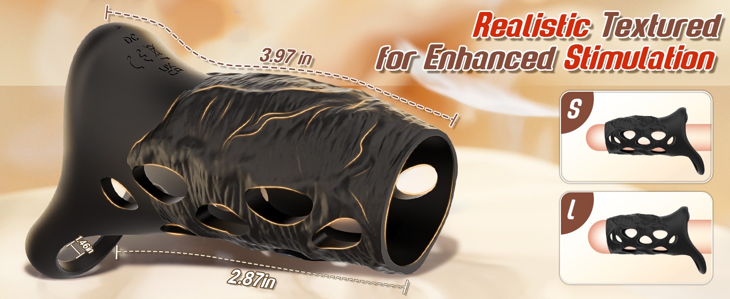 Half-wrapped and hollow design – comfort meets intensity: Designed for men’s vibrator beginners and advanced users who crave stimulation and comfort. The half-wrapped penis extender provides realistic friction glans stimulation, maximizing each thrust while maintaining a natural feel.
