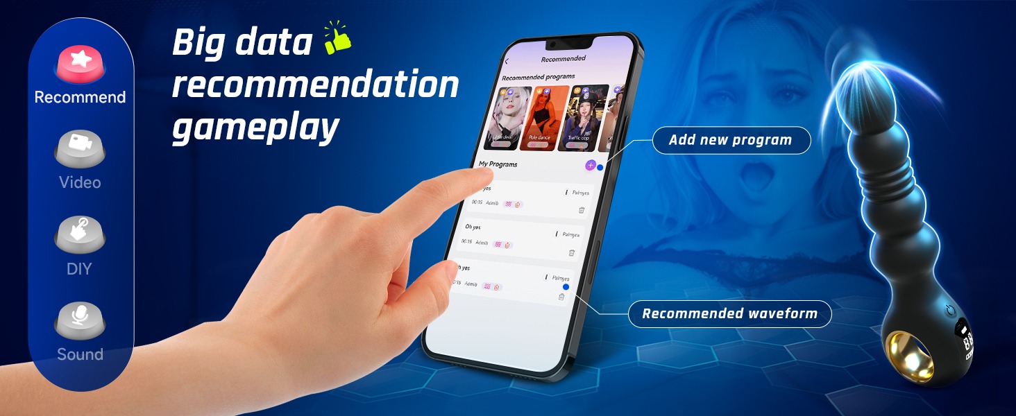 APP control, enhance the pleasure of anal plug: experience 4 modes of control - recommendation, video, DIY, voice control. Whether you like a carefully planned experience or a customizable adventure, this men's sex toy will allow you and your partner to better please each other.