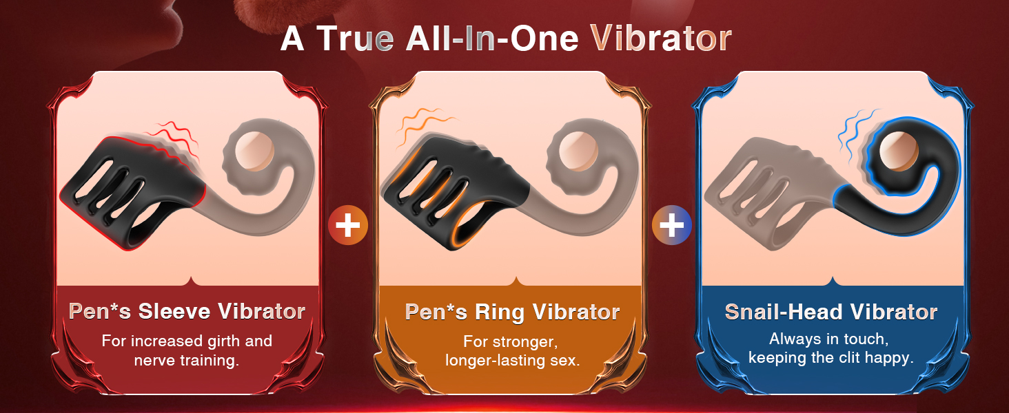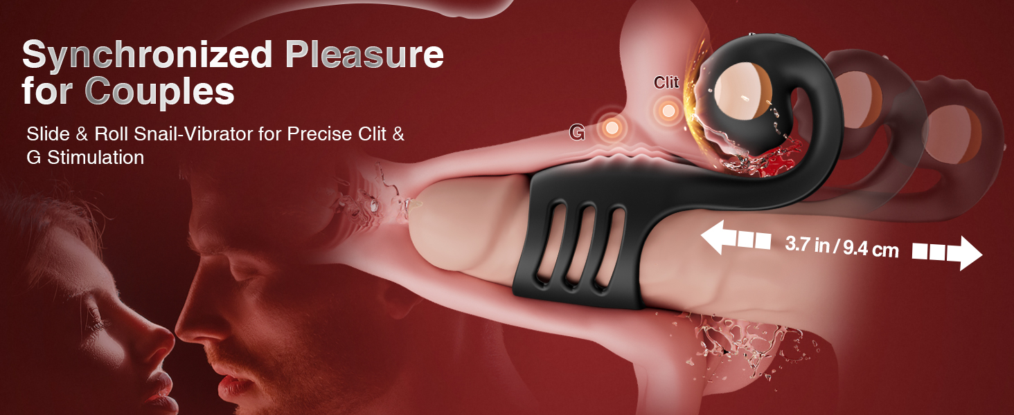 All-in-One Penis Ring Vibrator: Enhance power and enjoy dual stimulation with our snail-head male sex toy, offering a 360° wrapped penis sleeve, vibrating cock ring and clit/g-spot stimulator. Let your partner get a deeper, fuller and more intimate moment