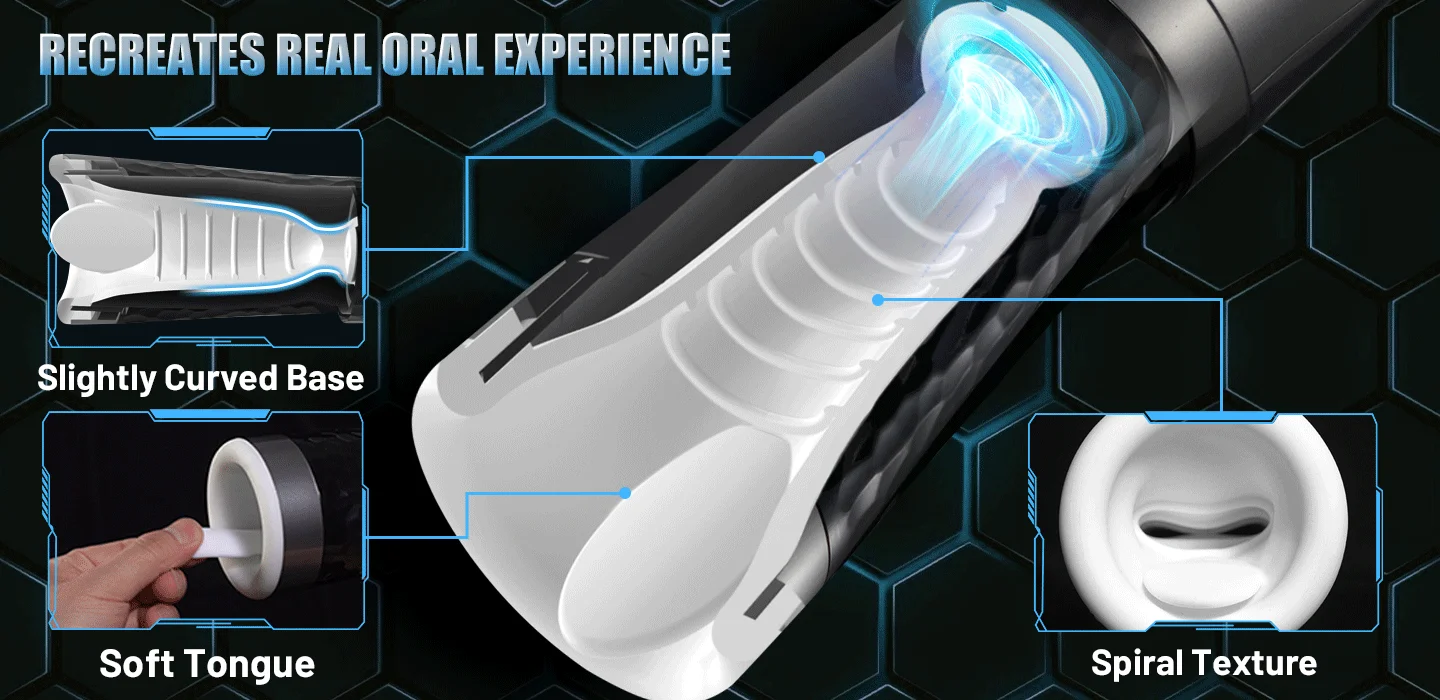 🌀 Funnel-shaped channel and spiral textured tunnel design: A funnel-shaped entrance with a spiral texture running through the channel, approximately 5.1 inches long. Simulates the tightness and spiral grip of a deep throat, providing a realistic, deep-throat stimulation during penetration.