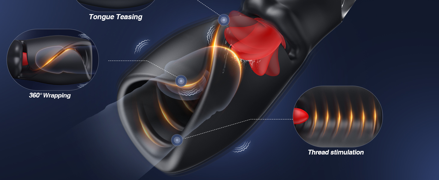 High-Frequency Tongue Stimulation (Up to 1000 times/minute) — Powerful Training of Glans Sensitivity: High-frequency tongue stimulation precisely targets sensitive areas, creating a desensitizing stimulation cycle. Reduces sensitivity, prolongs duration, and gives you greater control over the rhythm.