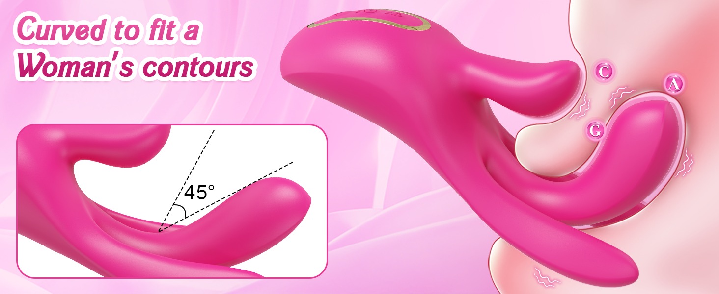 Angled Curves - Precise Stimulation: A sex toy like never before! Designed with an angled curve, this sex toy vibrator glides effortlessly over the natural contours of a woman's vagina. It features a gentle upward arch and a 45° adjustable angle, allowing women to customize the angle and direction of the toy for more precise stimulation of the G-spot.