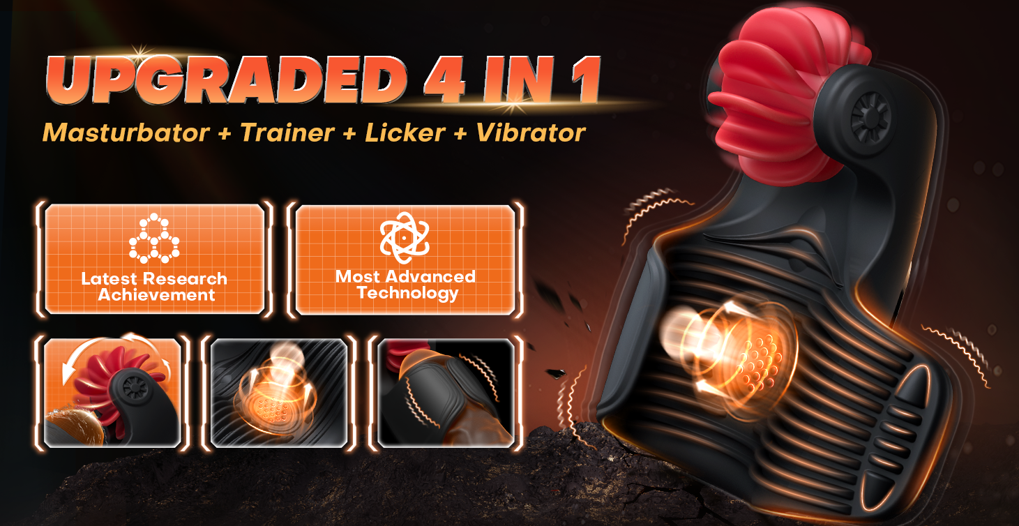 4 in 1 Multi-function Male Trainer-The rotating licking simulates the sensation of a swirling tongue, providing precise stimulation. The tapping function offers deep pleasure with rhythmic vibrations, while the strong vibration focus on the glans and back muscles, inducing intense spasms for a heightened experience.
